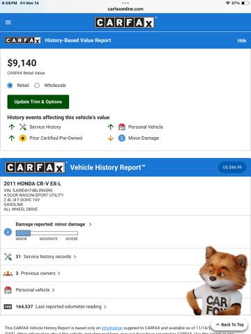 I am interested in the 2011 Honda CR-V EX-L that you have for sale.