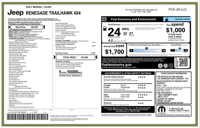 2021 Jeep Renegade Trailhawk 4x4 LOADED PanoRoof Premium Audio+++